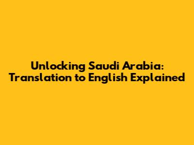 Unlocking Saudi Arabia: Translation To English Explained