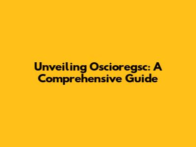 Unveiling Oscioregsc: A Comprehensive Guide