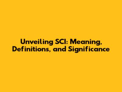 Unveiling SCI: Meaning, Definitions, And Significance