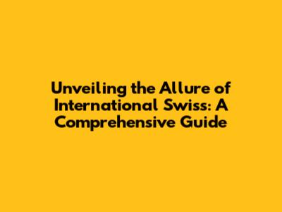 Unveiling The Allure Of International Swiss: A Comprehensive Guide