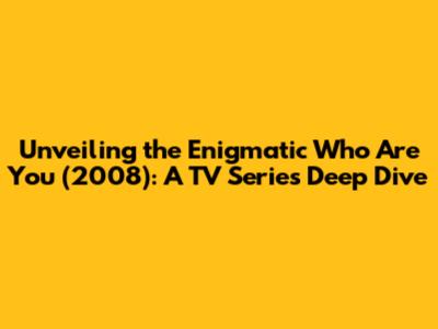 Unveiling The Enigmatic 'Who Are You' (2008): A TV Series Deep Dive