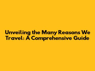 Unveiling The Many Reasons We Travel: A Comprehensive Guide