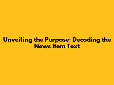 Unveiling The Purpose: Decoding The News Item Text