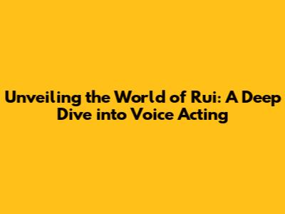 Unveiling The World Of Rui: A Deep Dive Into Voice Acting